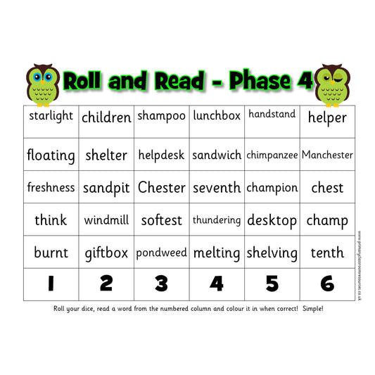 Roll and Read Game - Letters and Sounds Phase 2 Words