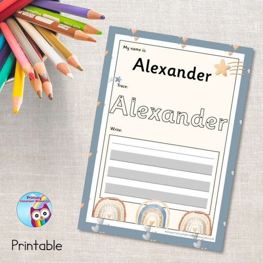 EDITABLE Name Writing Cards - Neutral Rainbows