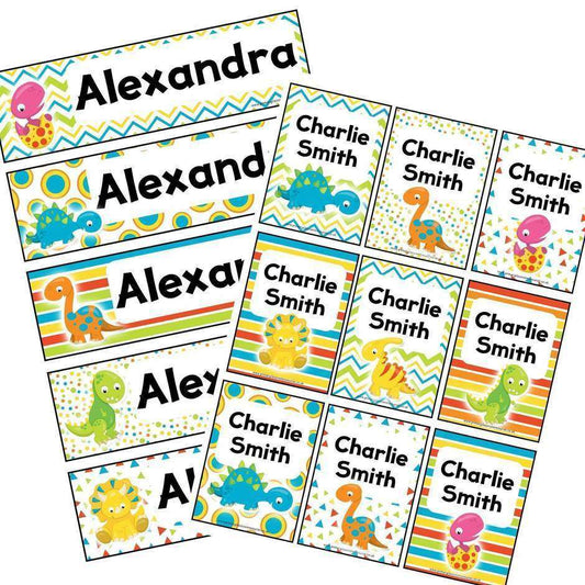 EDITABLE Name Tray & Coat Peg Labels - Colourful Dinosaur