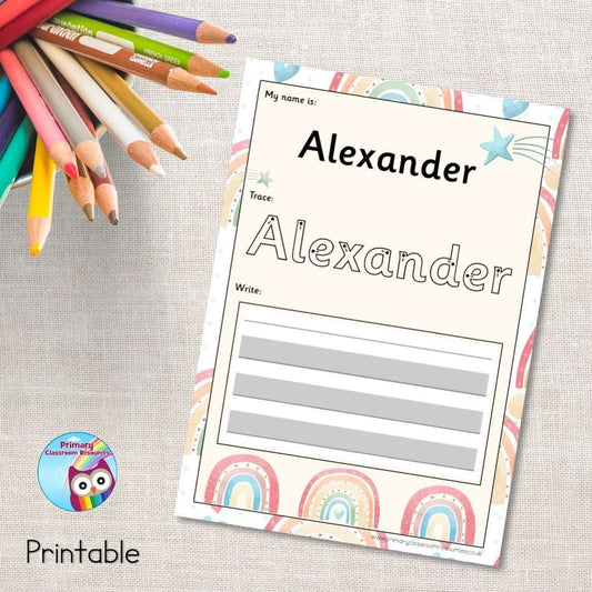 EDITABLE Name Writing Cards - Pastel Rainbows