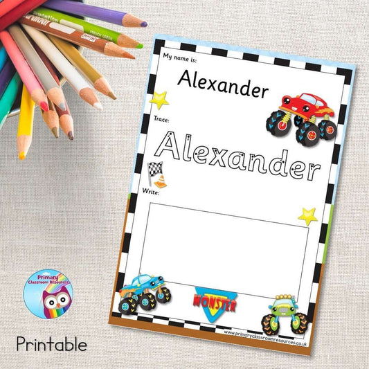 EDITABLE Name Writing Cards - Monster TrucksRegular price £2.50 GBPRegular priceUnit price / per-